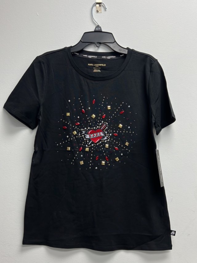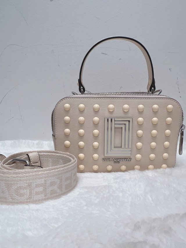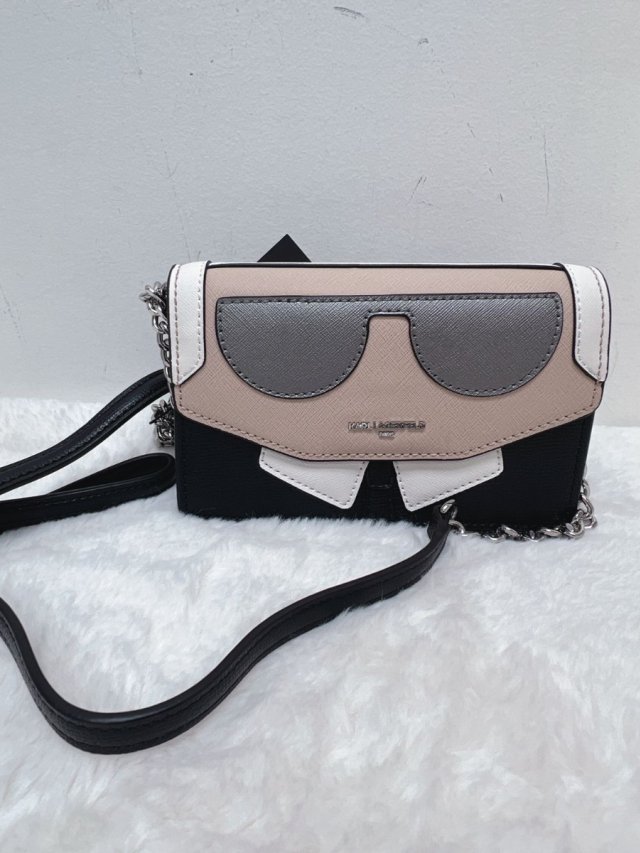 Karl Cartoon粉紅心鼻貓zip tote black fabric