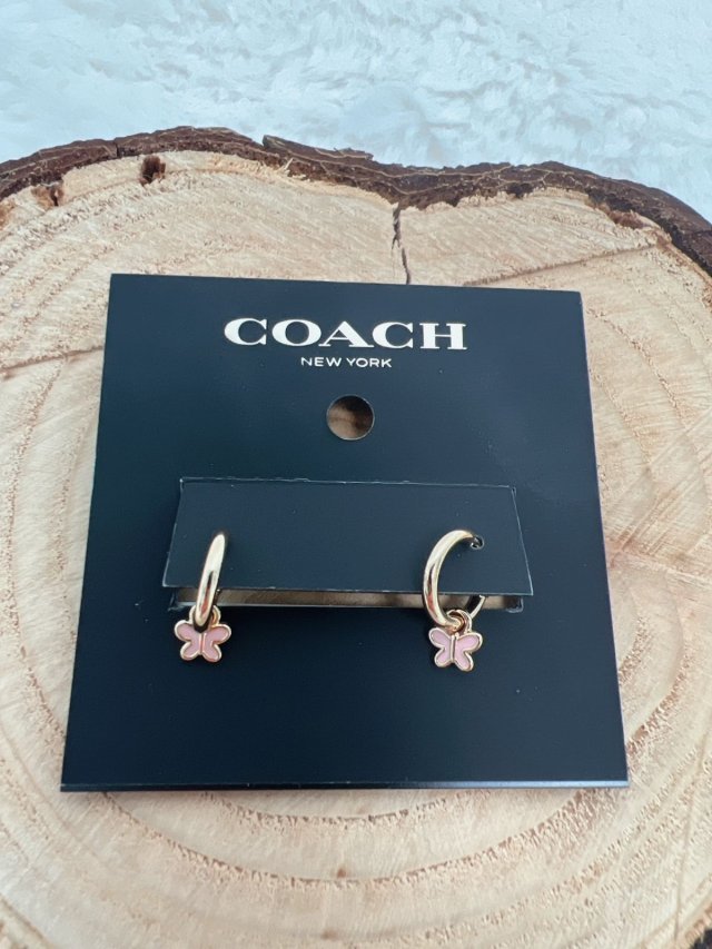 Coach Butterfly charm hug earrings gold/pink