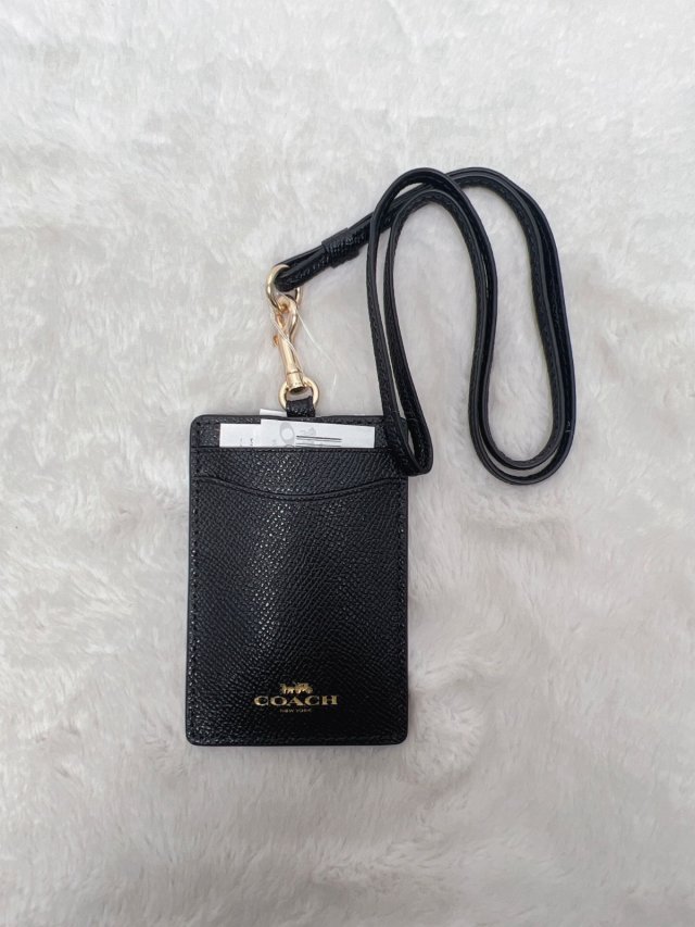 Coach Crsg Leather Lanyand ID Black