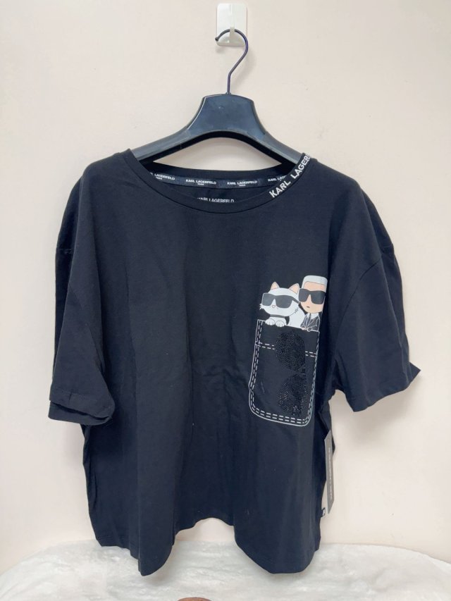 Karl Women Pocket Shirt With Gold Chain Black 9565