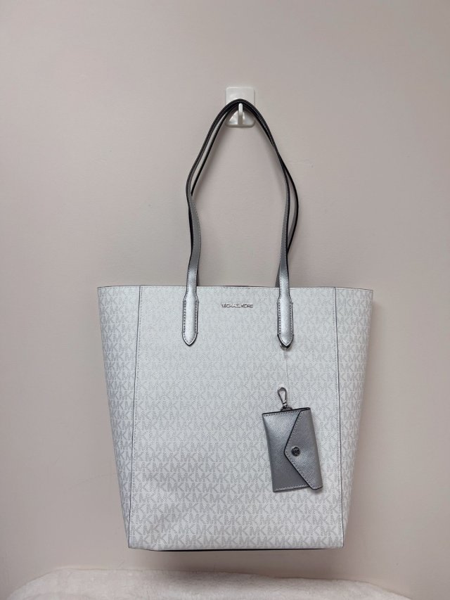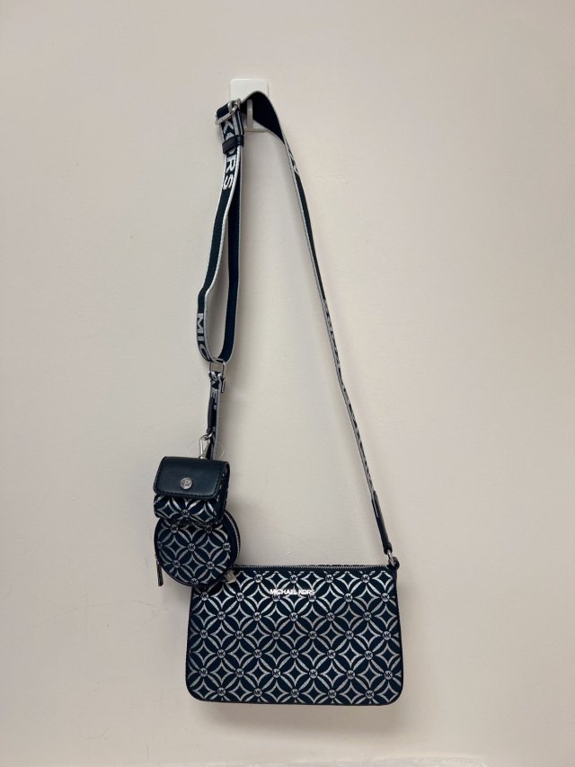 MK Jet Set Metallic Logo Jacquard Crossbody Bag with Case for Apple Airpods Pro Black/Silver