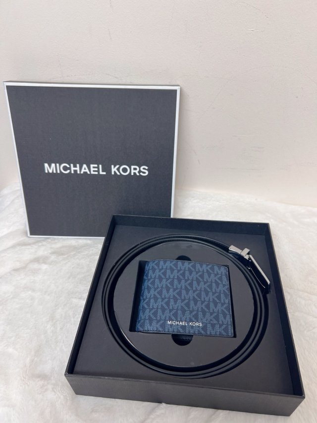 MK Men Billfold Wallet and Belt Gift Set Amiral/Blue Logo