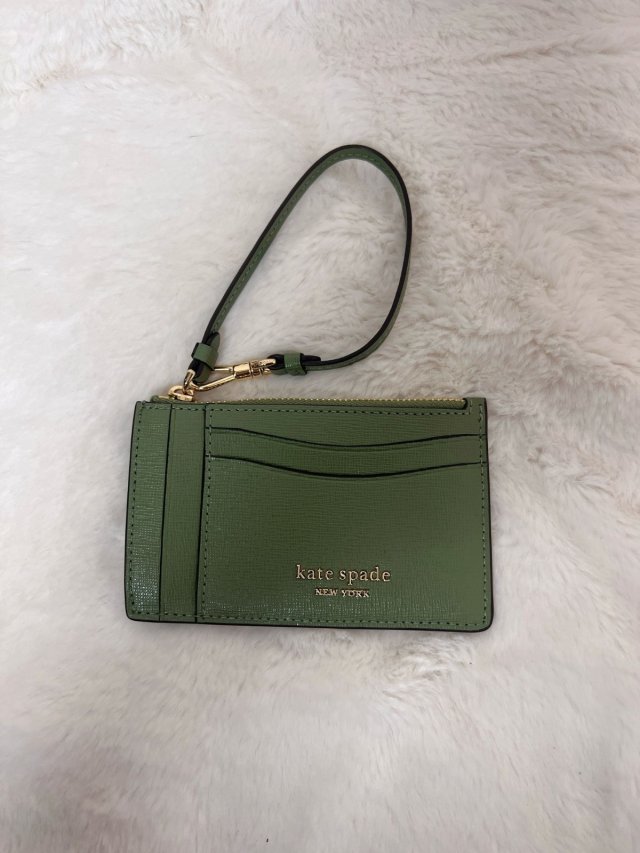 KS Saffiano Leather Card Case Wristlet Cedar Stan