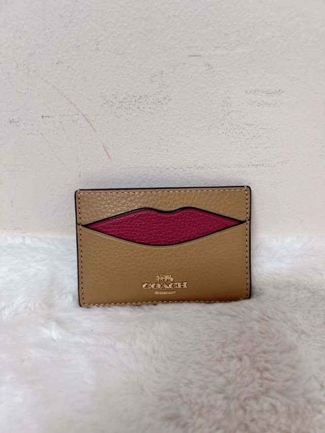 Coach Lip Card Case Gold/Latte Multi