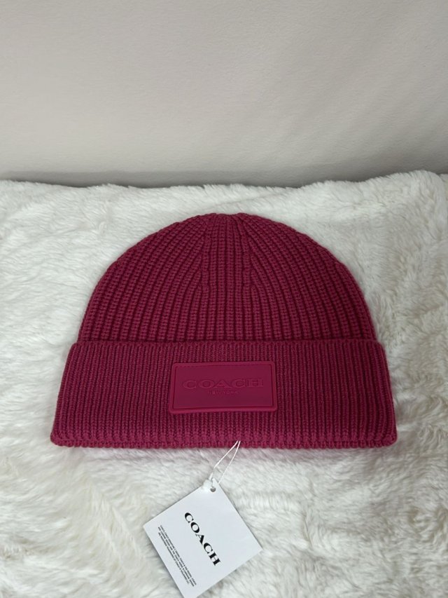 Coach dark pink beanie