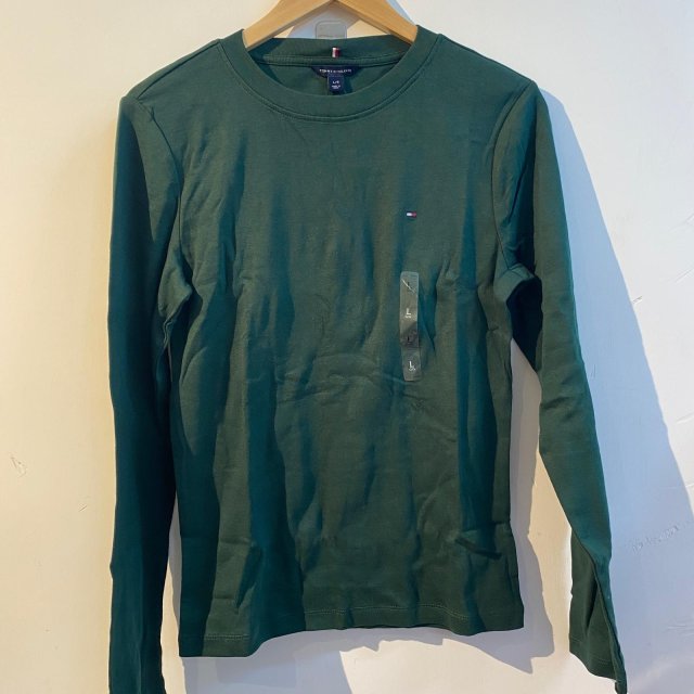 TOMMY HILFIGER GREEN LONG SLEEVES TEE SIZE L MEN