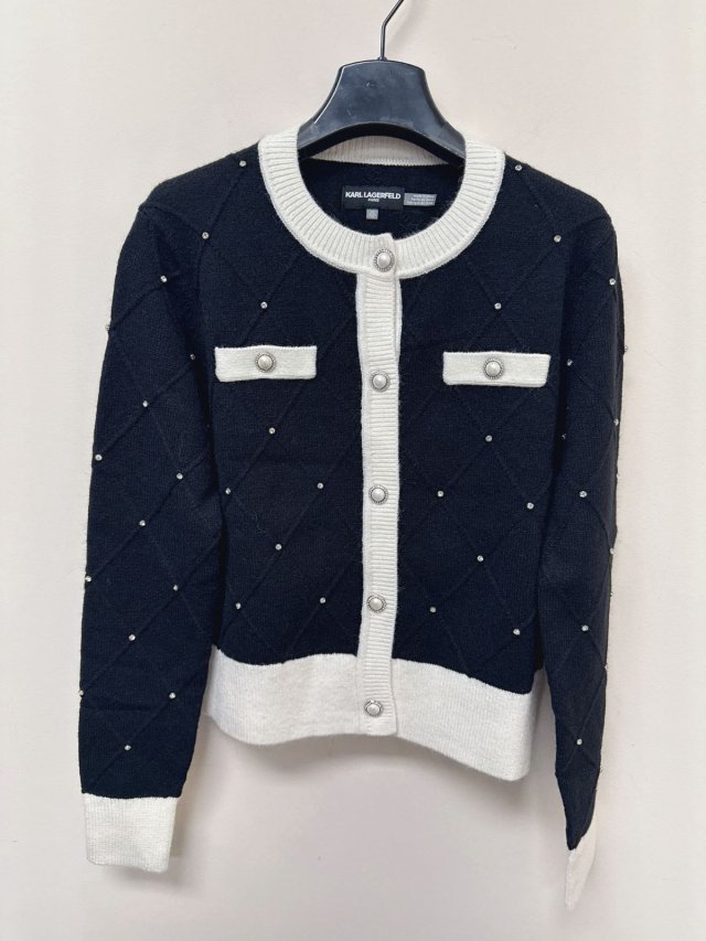 Karl Women gem diamond cardigan Black/White S755