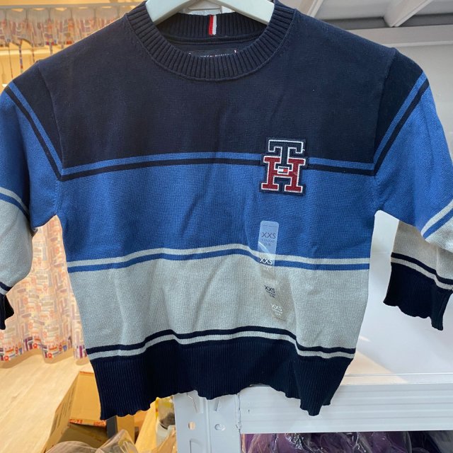 TOMMY HILFIGER (LONG SLEEVE BLUE STRIP CARDIGAN) SIZE XXS 2-3