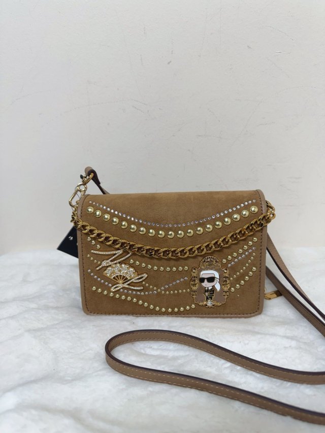 Karl Suede Chain Flap Crossbody Brown