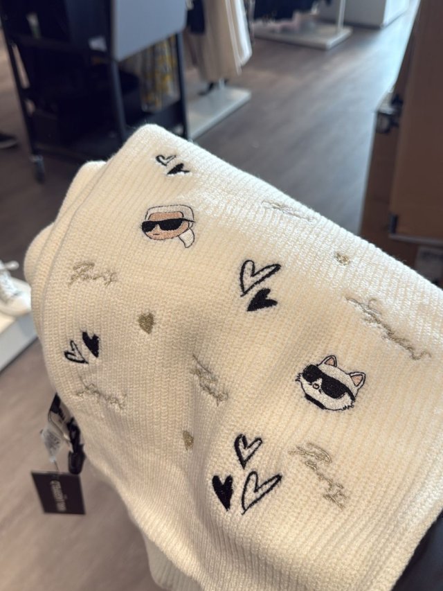 karl white knit scarf