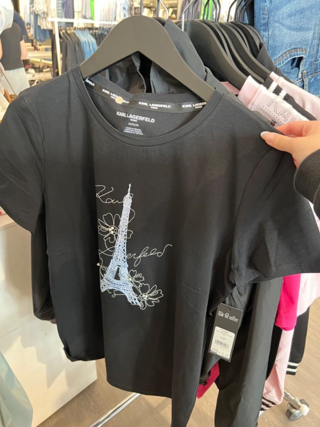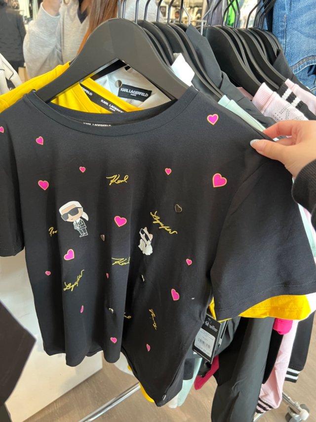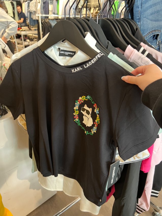 Karl W blk small cat tee cropped