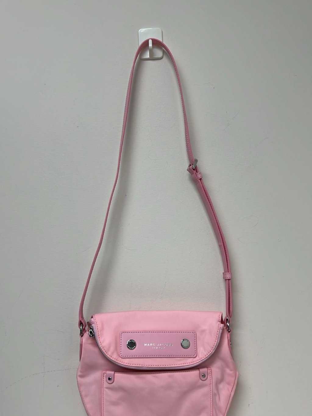 MJ pink nylon small flap messenger bag