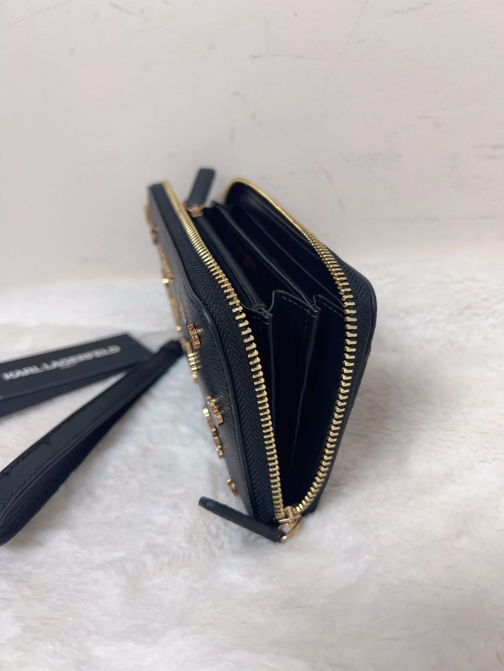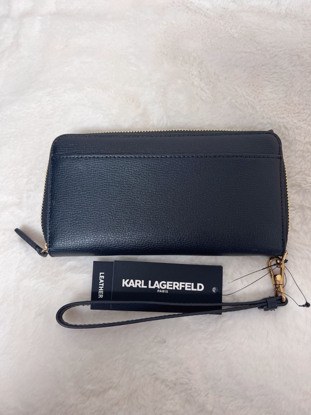 主頁 Karl Logo Long Zip Wallet Black/Gold