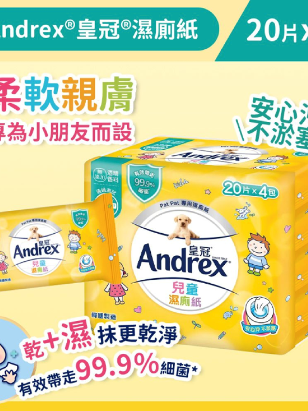 <$100 4 件任揀 > Andrex 兒童專用濕廁紙20片x4裝