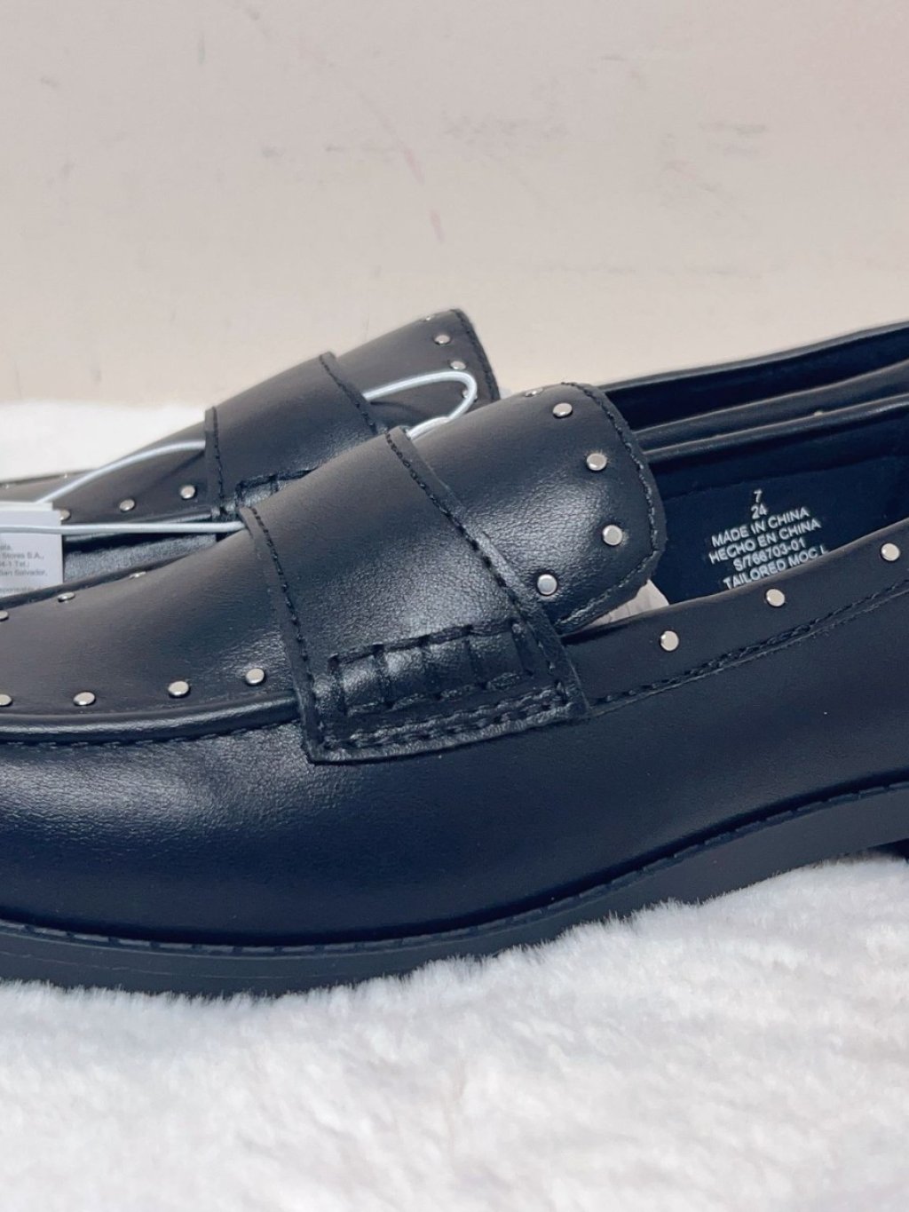 Old Navy Women Faux-Leather Loafer Black Studded US7