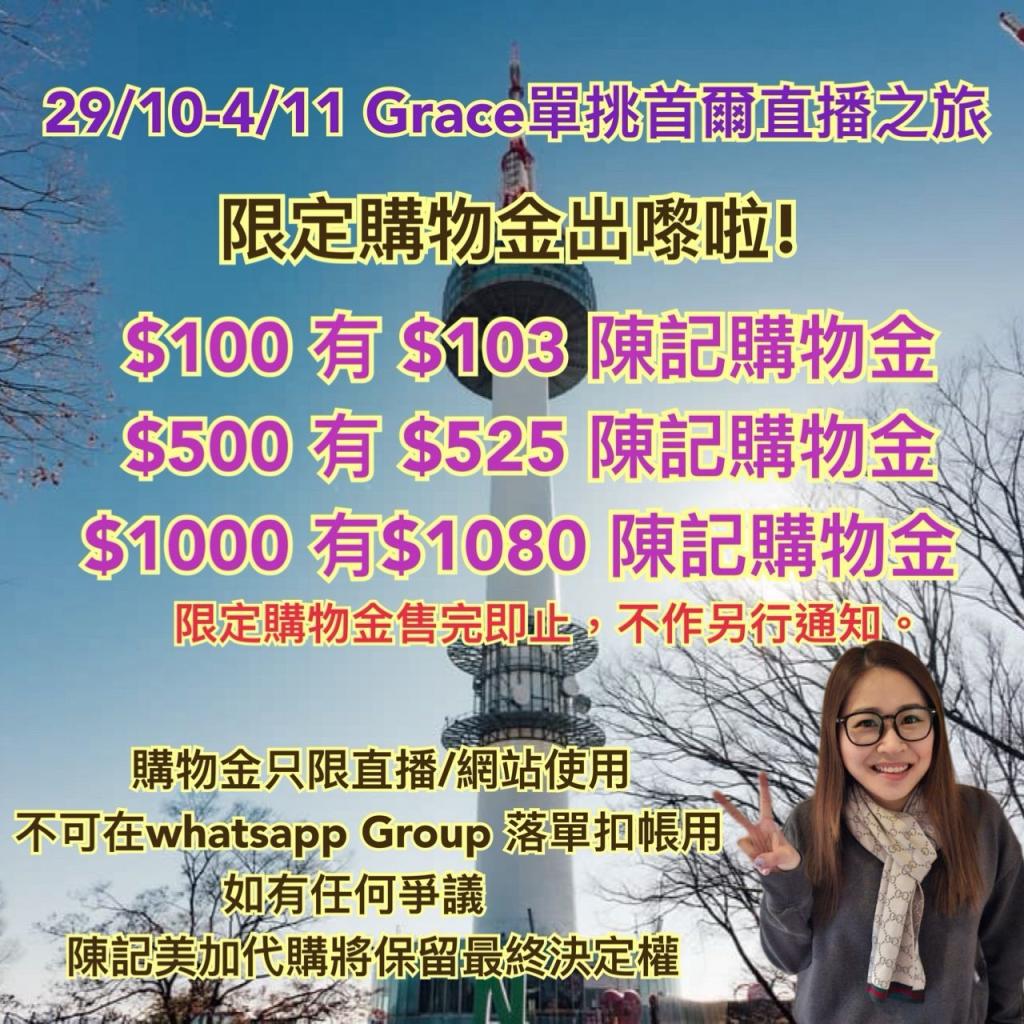 購物金只限直播/網站使用, 不可在whatsapp Group 落單扣帳用。