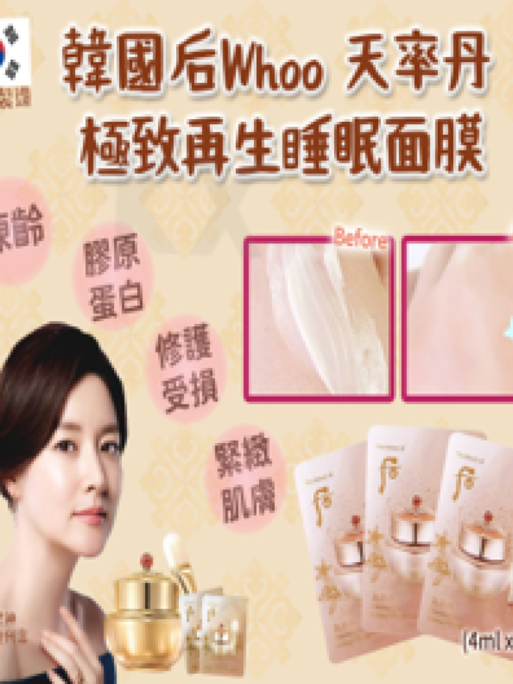 主頁 Whoo 后 天率丹 極致再生睡眠面膜, 4ml (1套60小片)