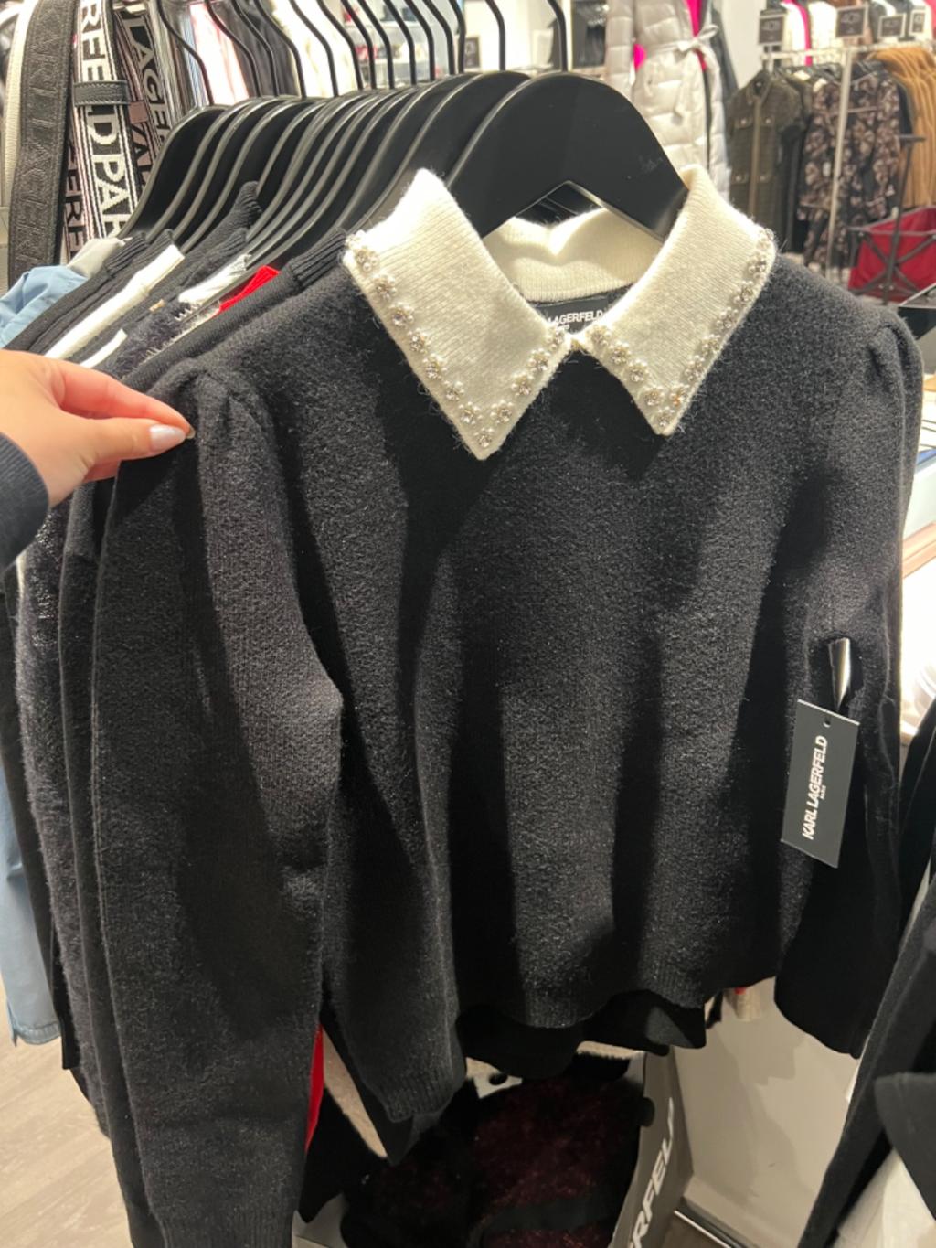 Karl black white collar gem sweater