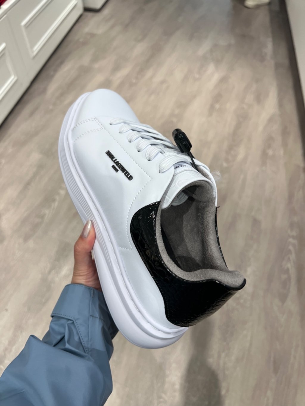 主頁 Karl M white platform sneaker with black croc