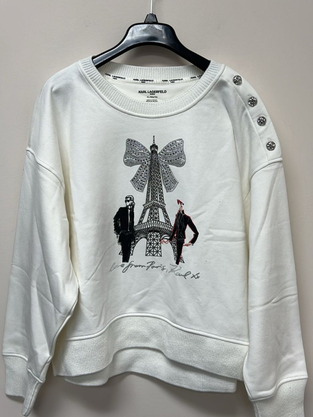 Karl Women White Bow Tower Crewneck Sweater JB11 (XL)