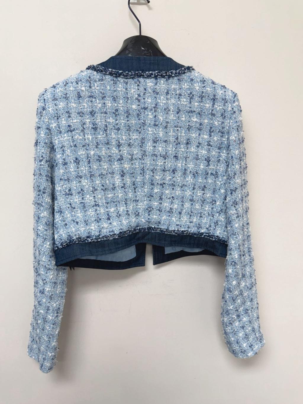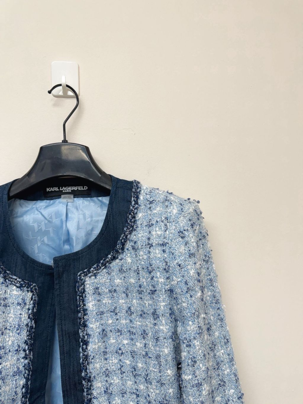 Karl Women Tweed Cropped Jacket Blue Multi size 8