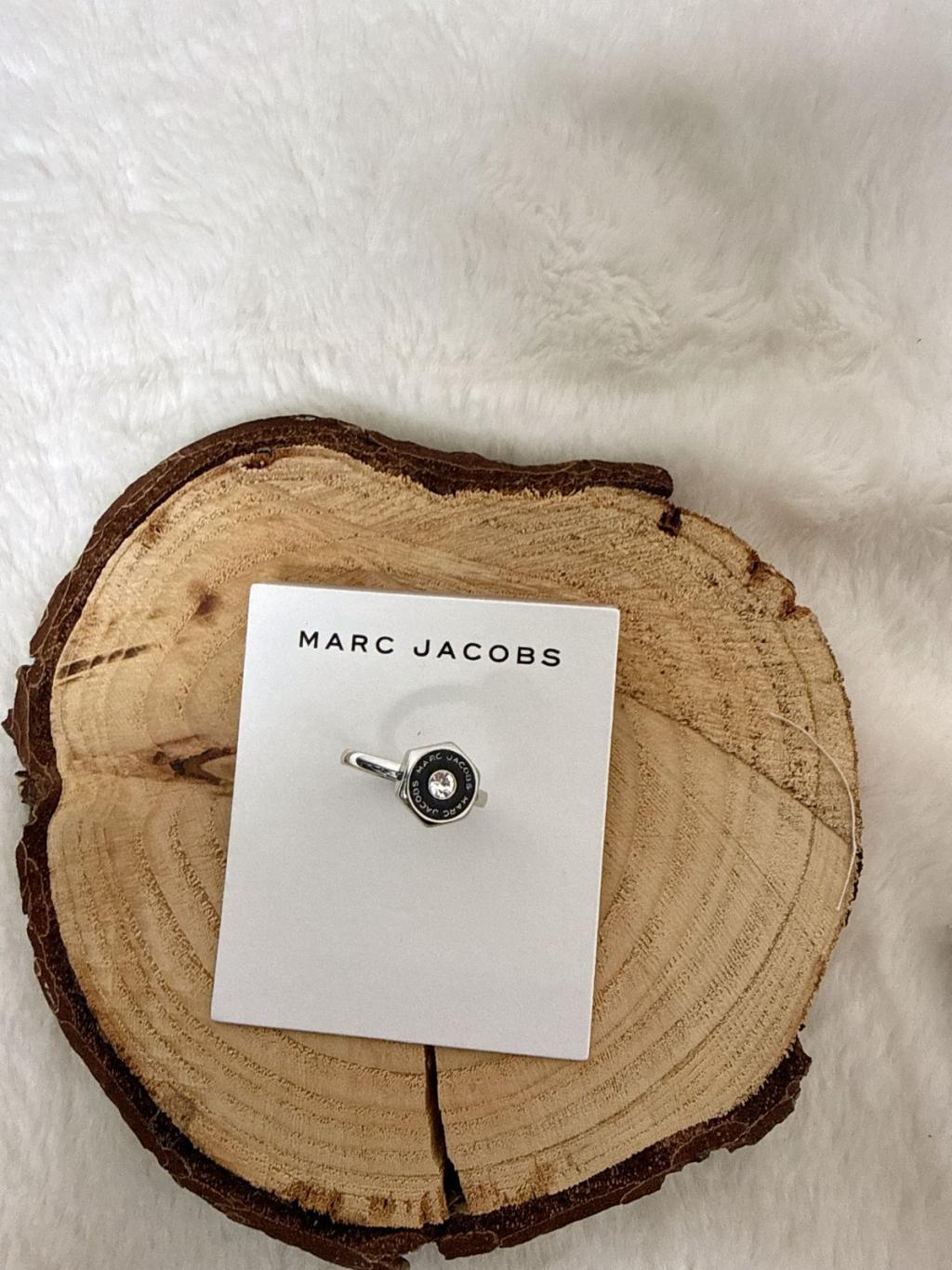MJ Bolt Enamel Crystal Ring Silver/Black size 8