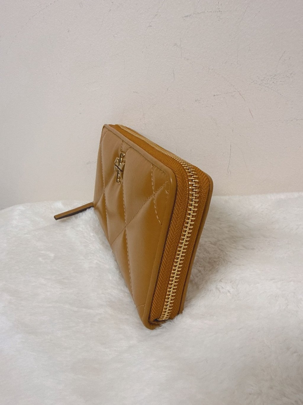 TB Kira Diamond Quilt Zip Continental Wallet Tan