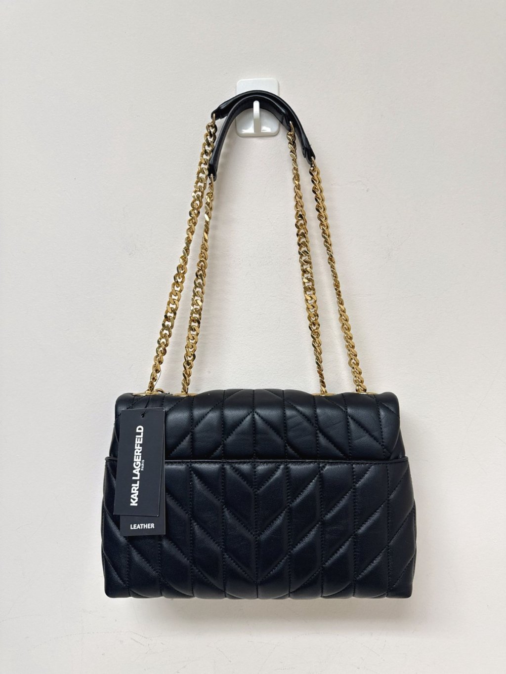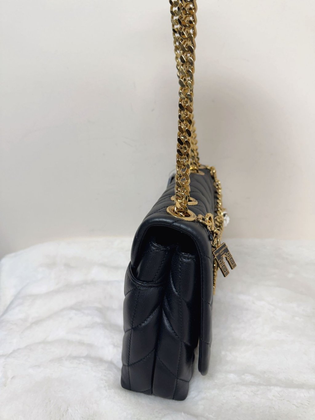少少花 Karl quilted charm flap crossbody black