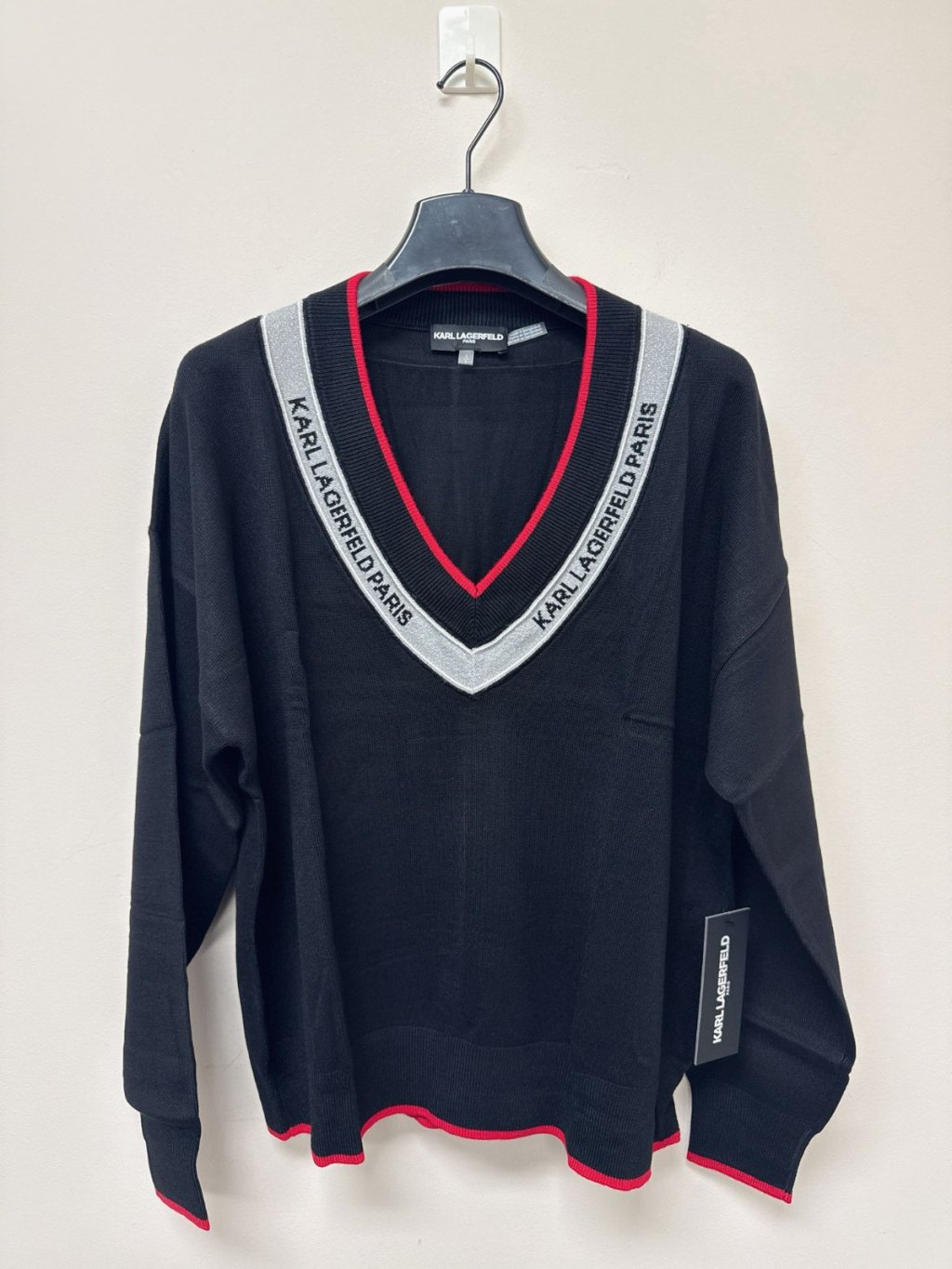 Karl Women red lines v neck sweater black S732
