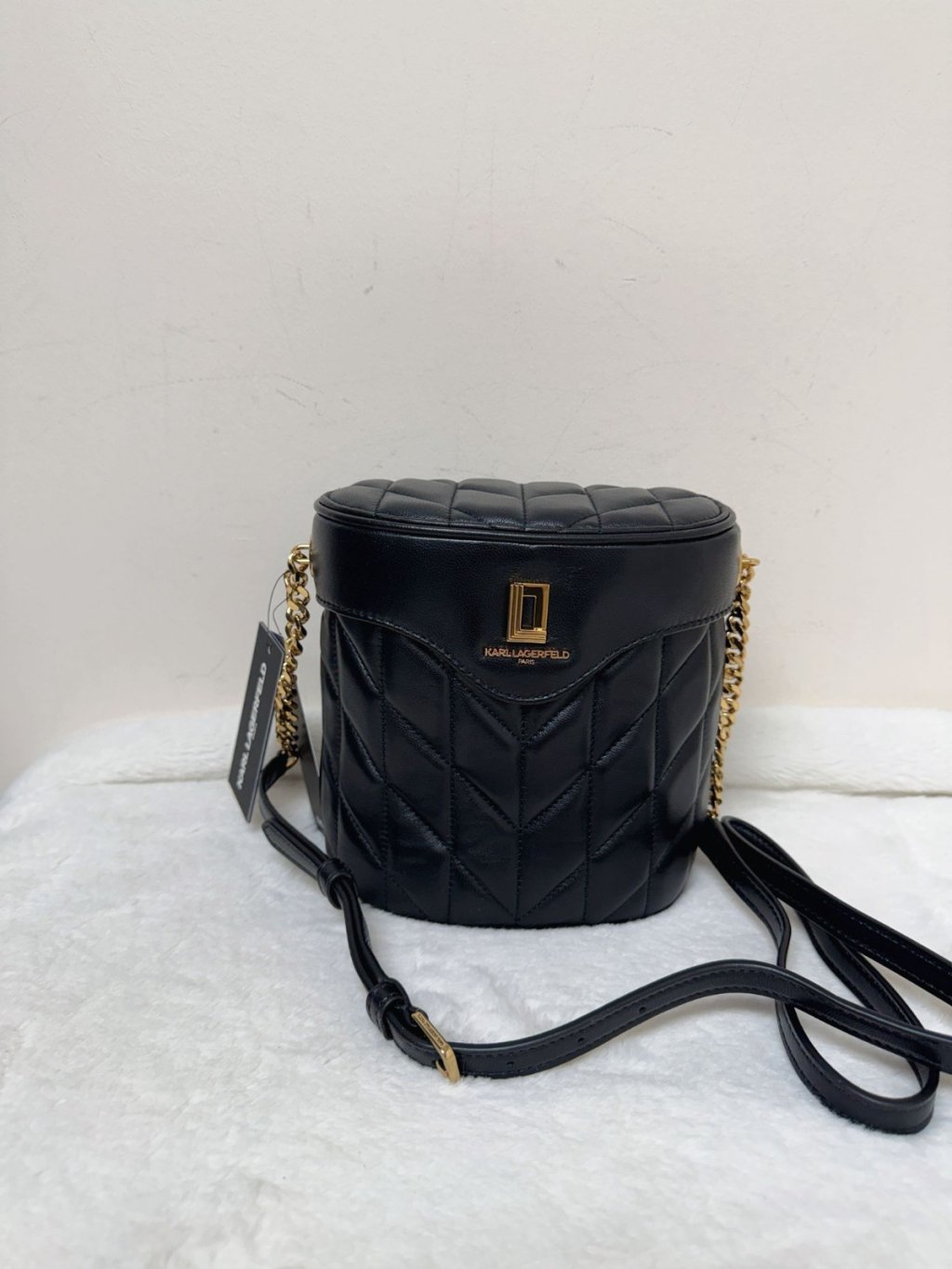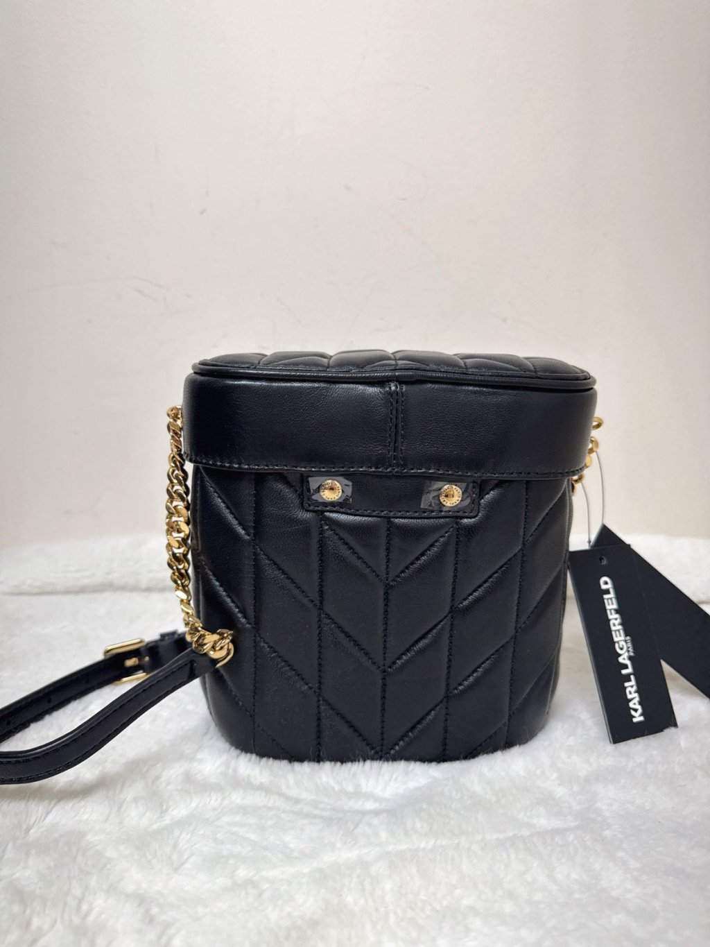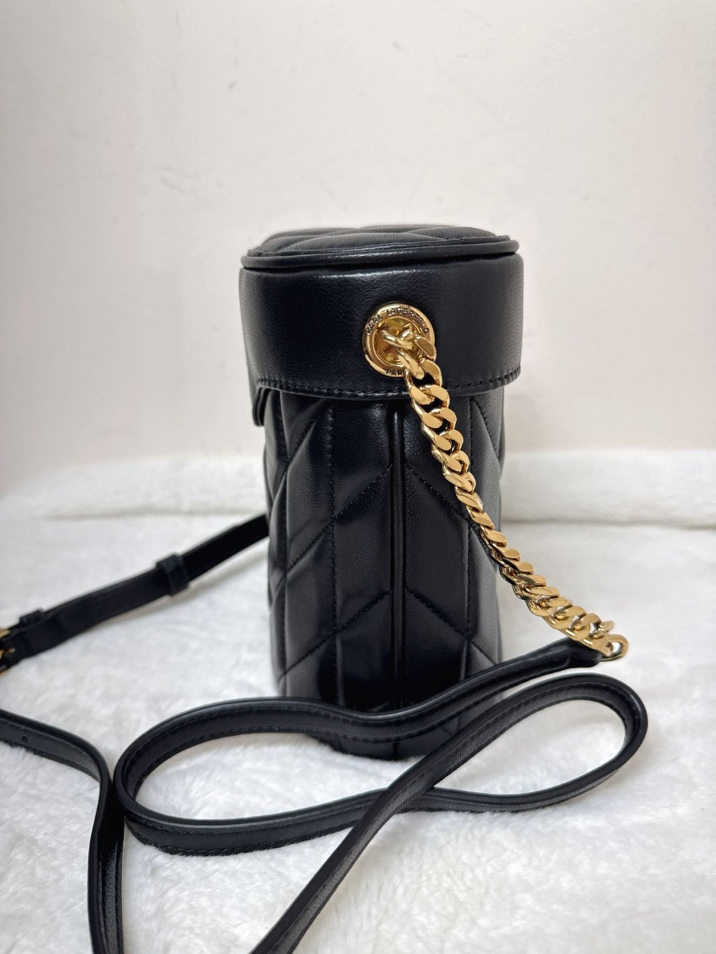 Karl quilted leather bucket bag black