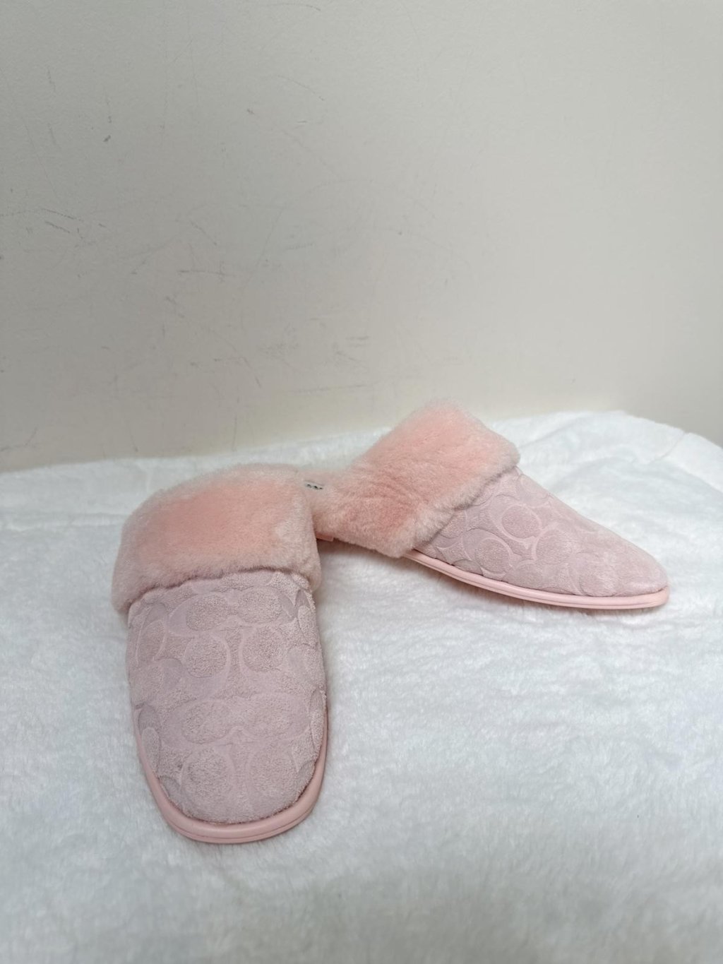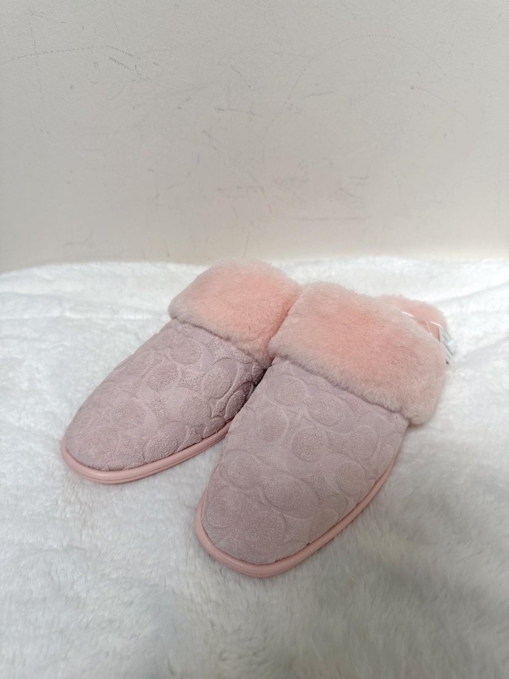 Coach Women Pink fur slides US9