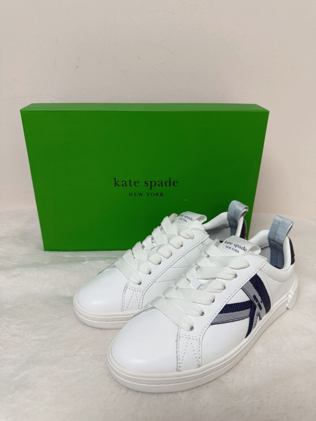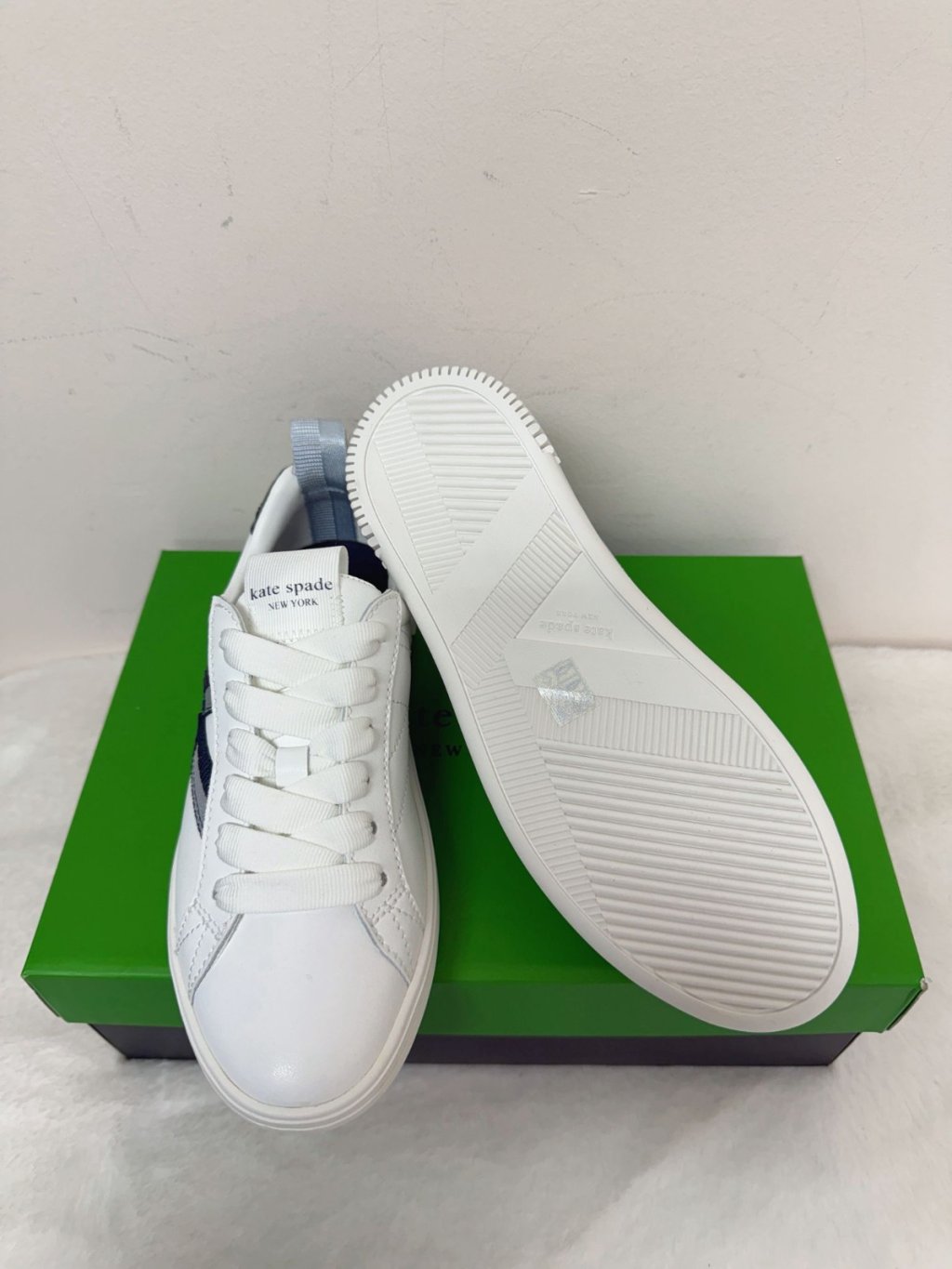 KS Women Signature K Lace Up Sneaker White/Navy KG693