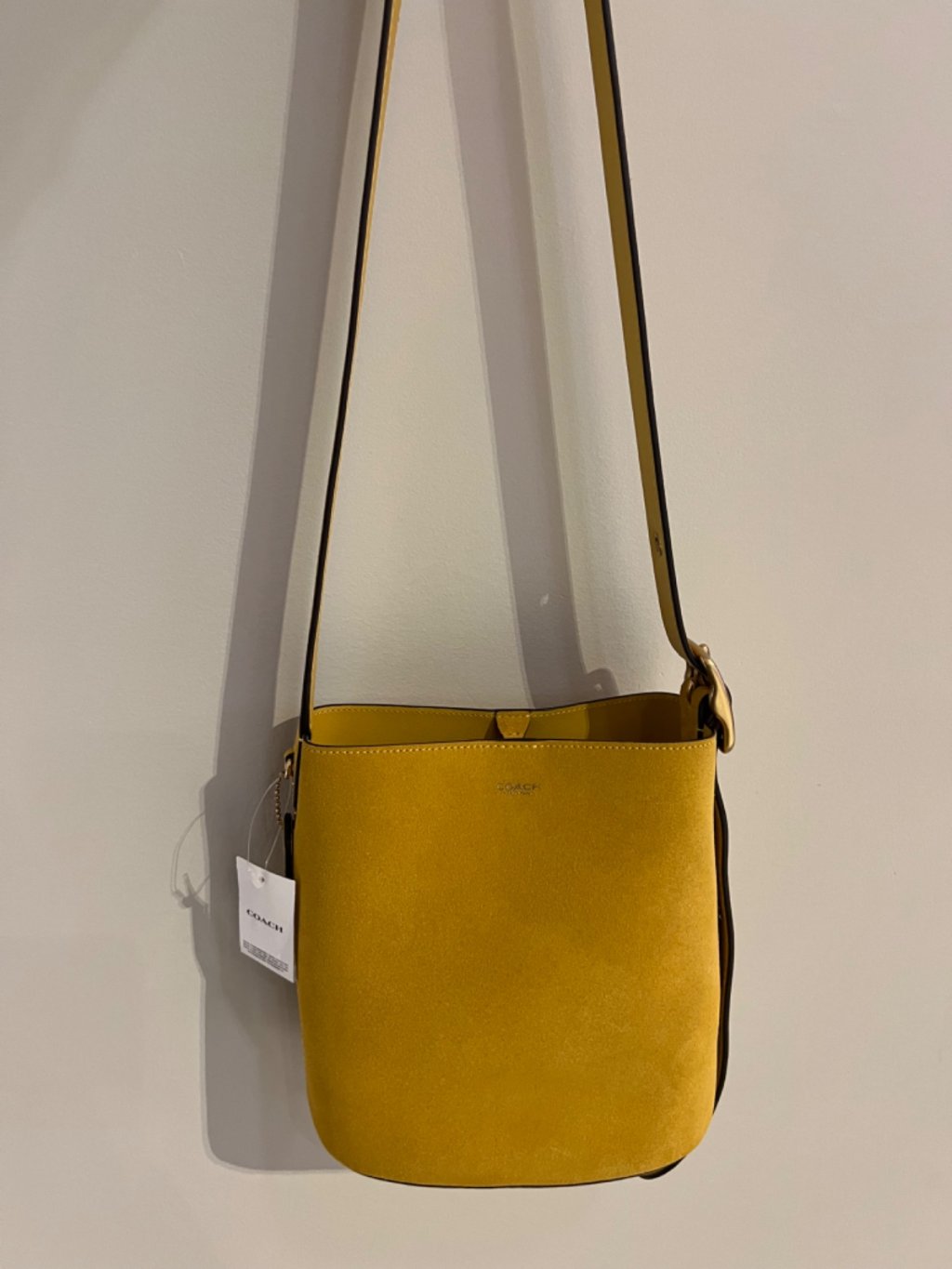 Coach R mustard yellow suede bucket bag
