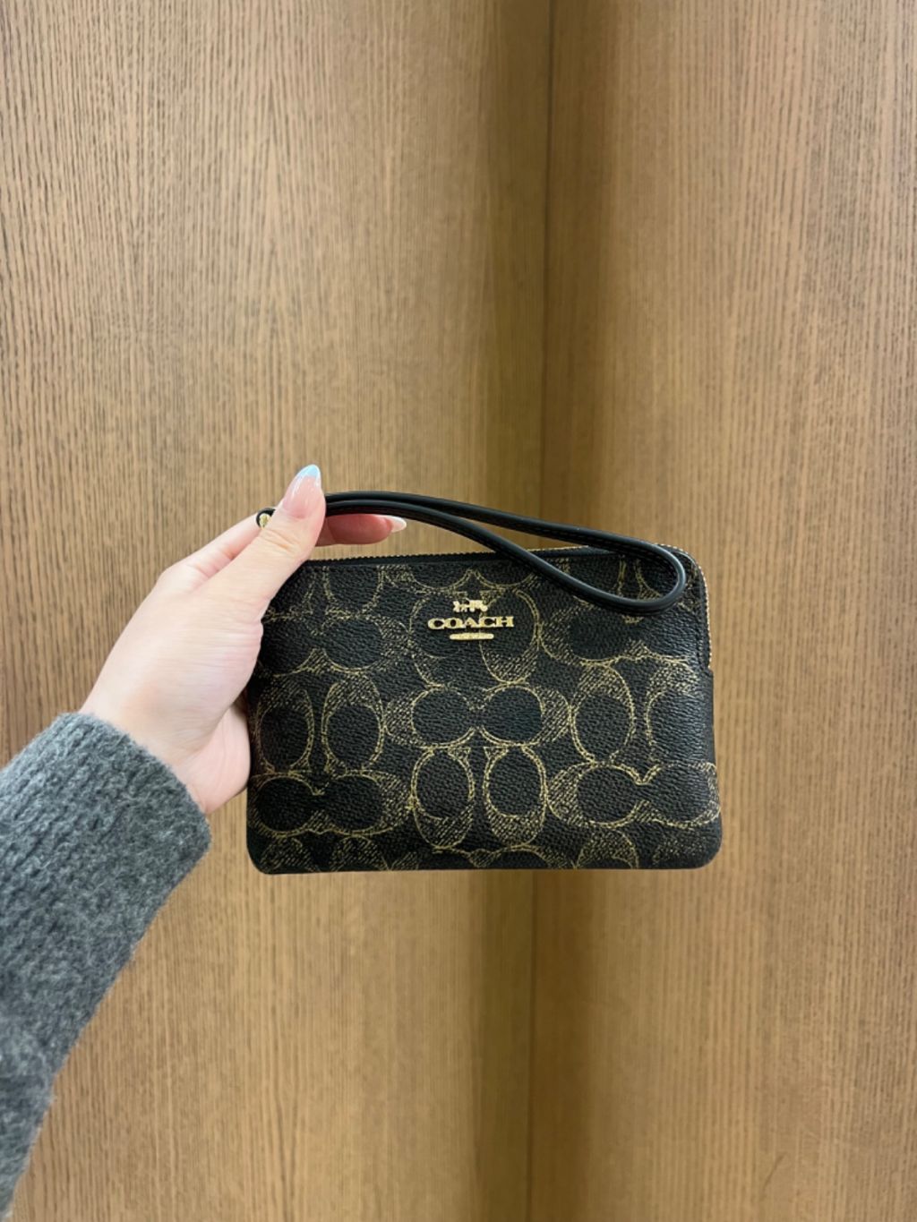 Coach blk logo small wristlet