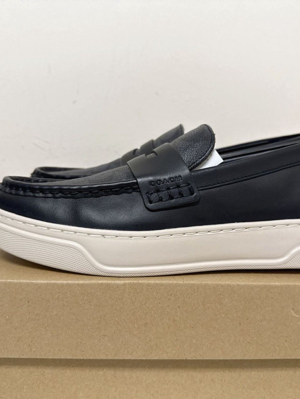 少少污漬Coach Men SIG Leather Hybrid Loafer Charcoal/Black US8.5/EU41.5