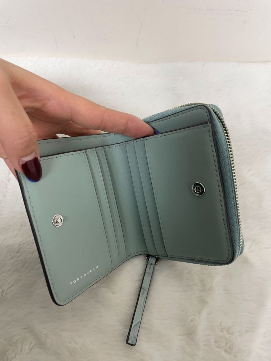 TB Robinson CROC Embossed BI-FOLD Wallet/Blue Celadon