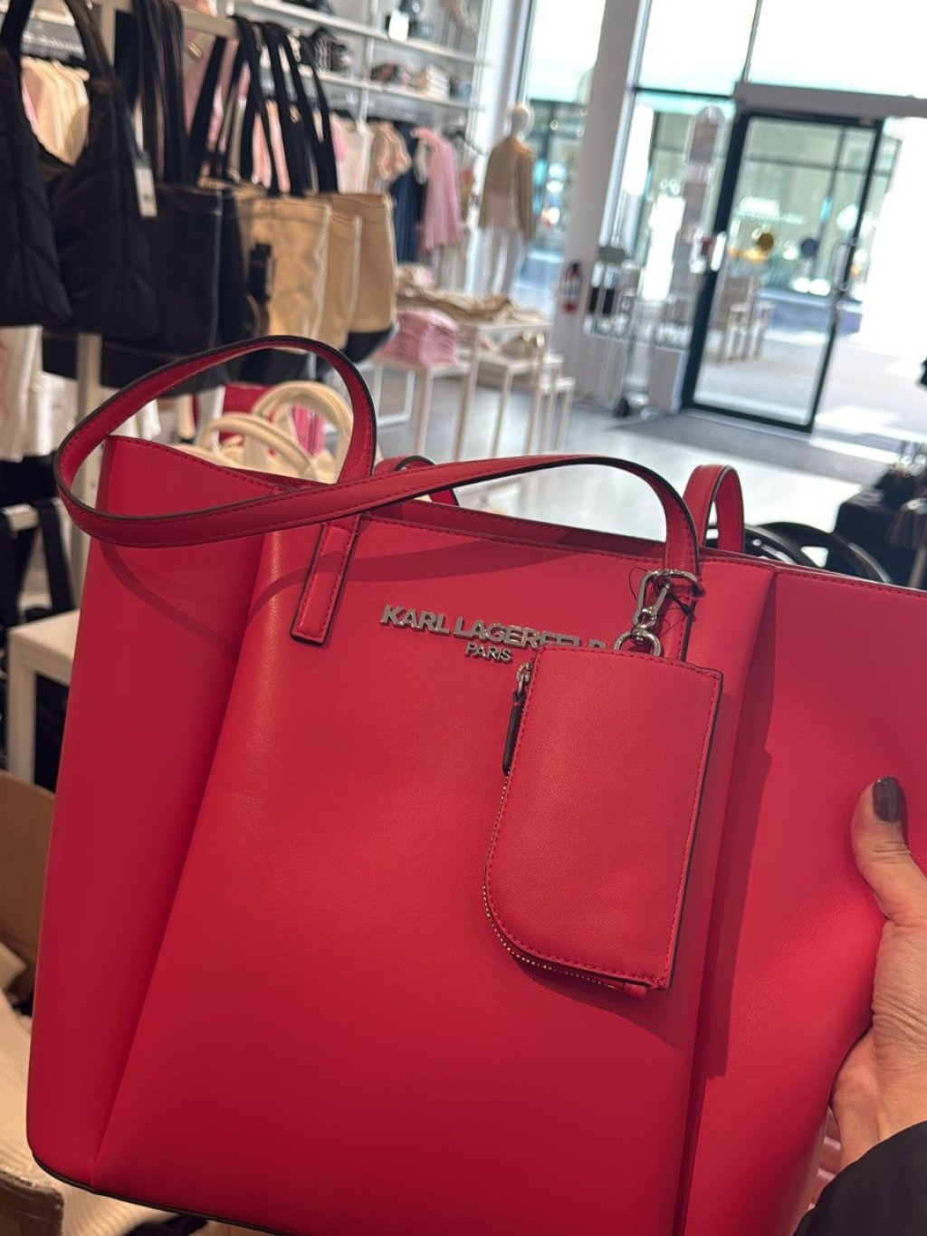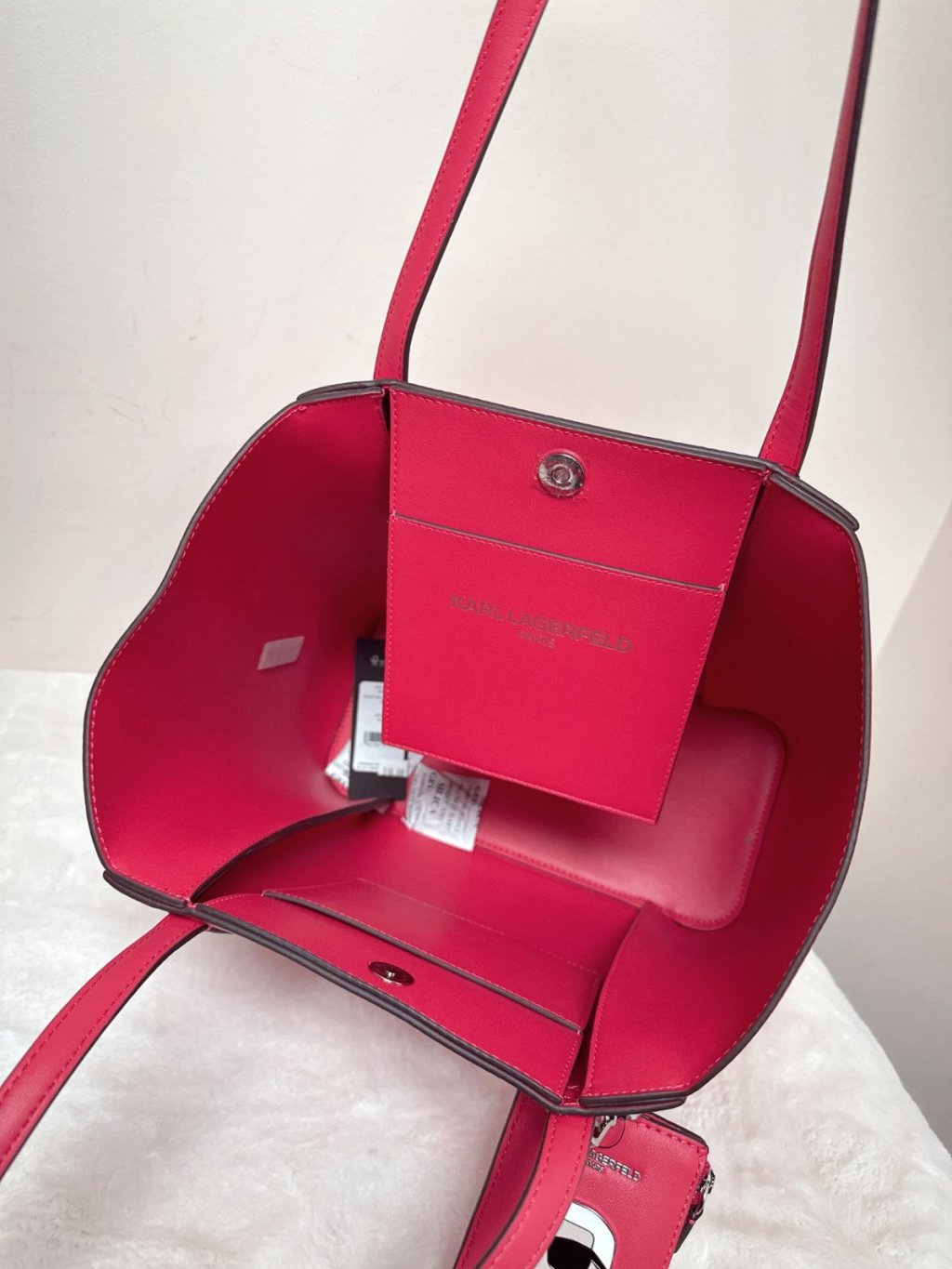 karl red leather tote w.pouch