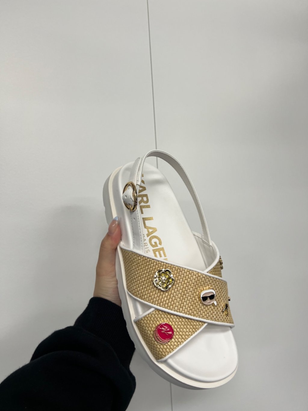 Karl W white straw sandals