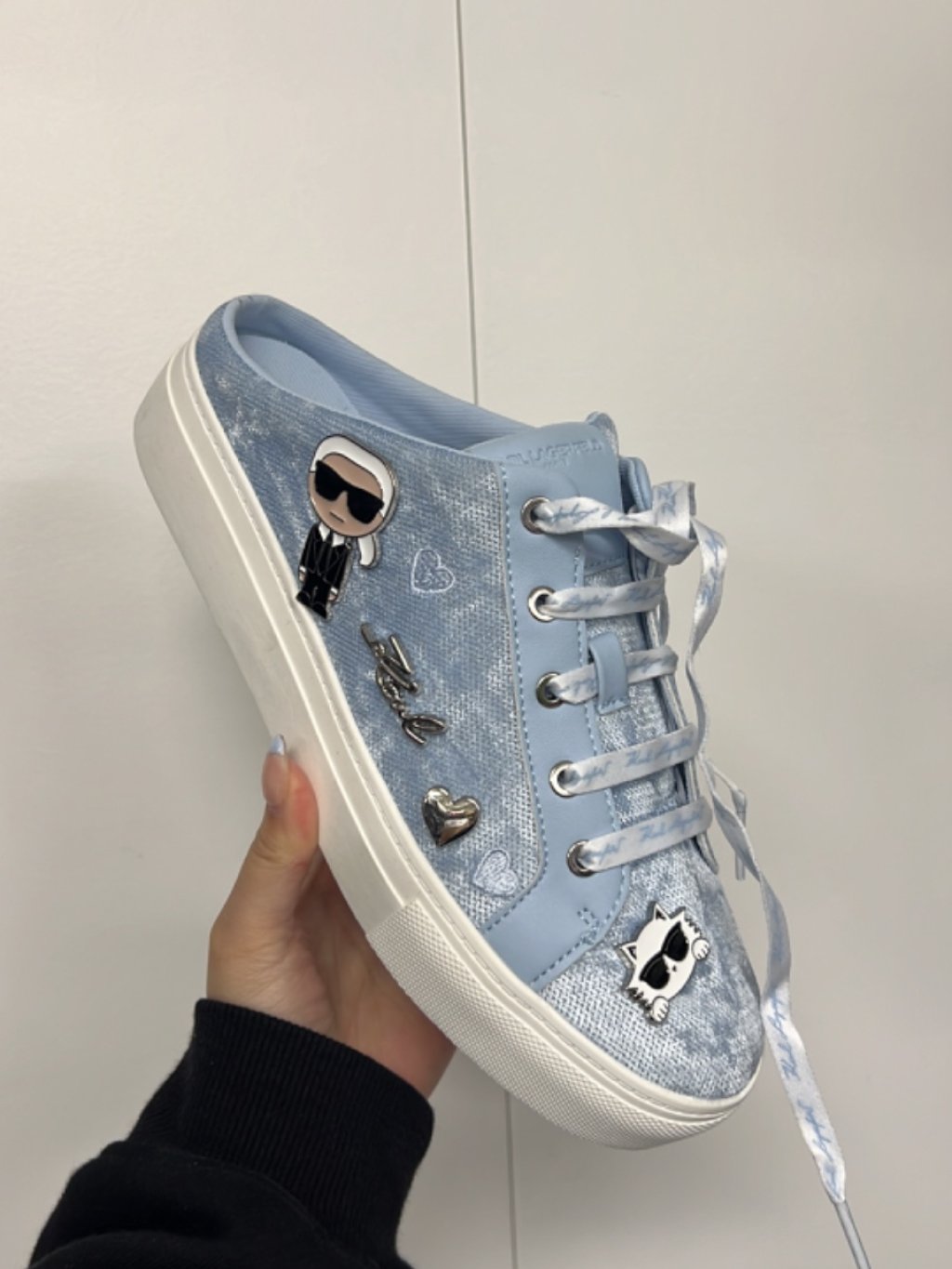 Karl W blue velvet slip on