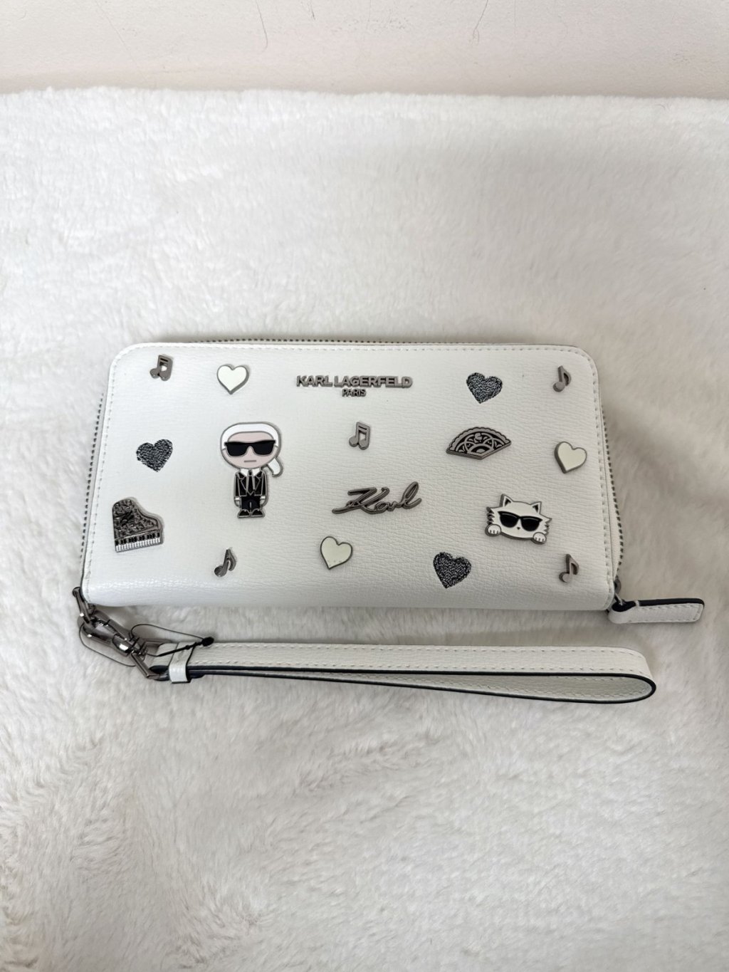 少少污漬Karl Charm Zip Long Wallet White/Silver