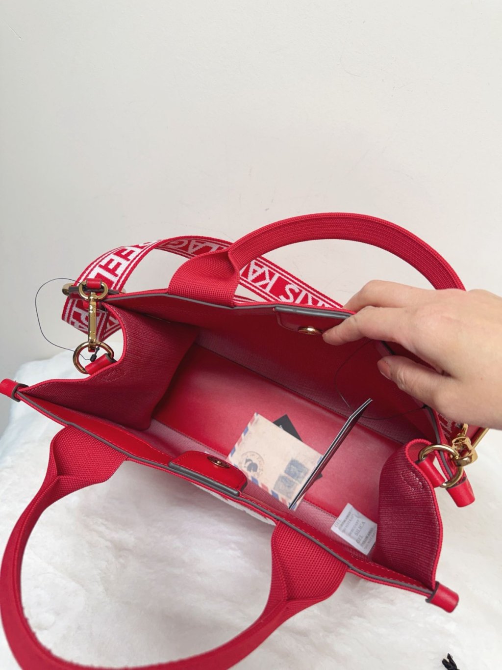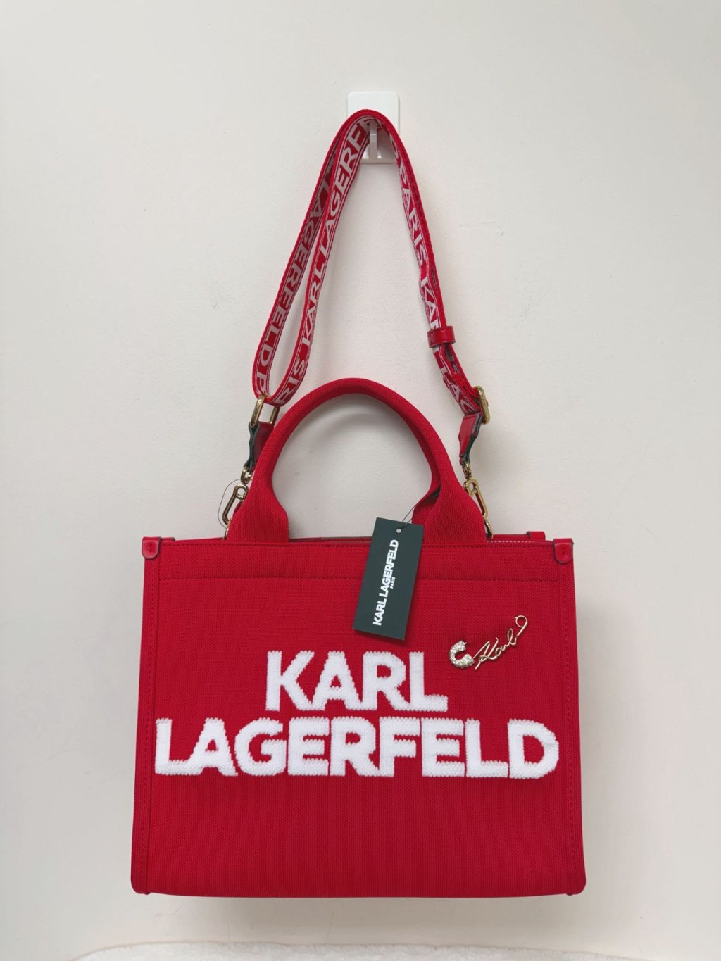 Karl White Logo Large Tote Red