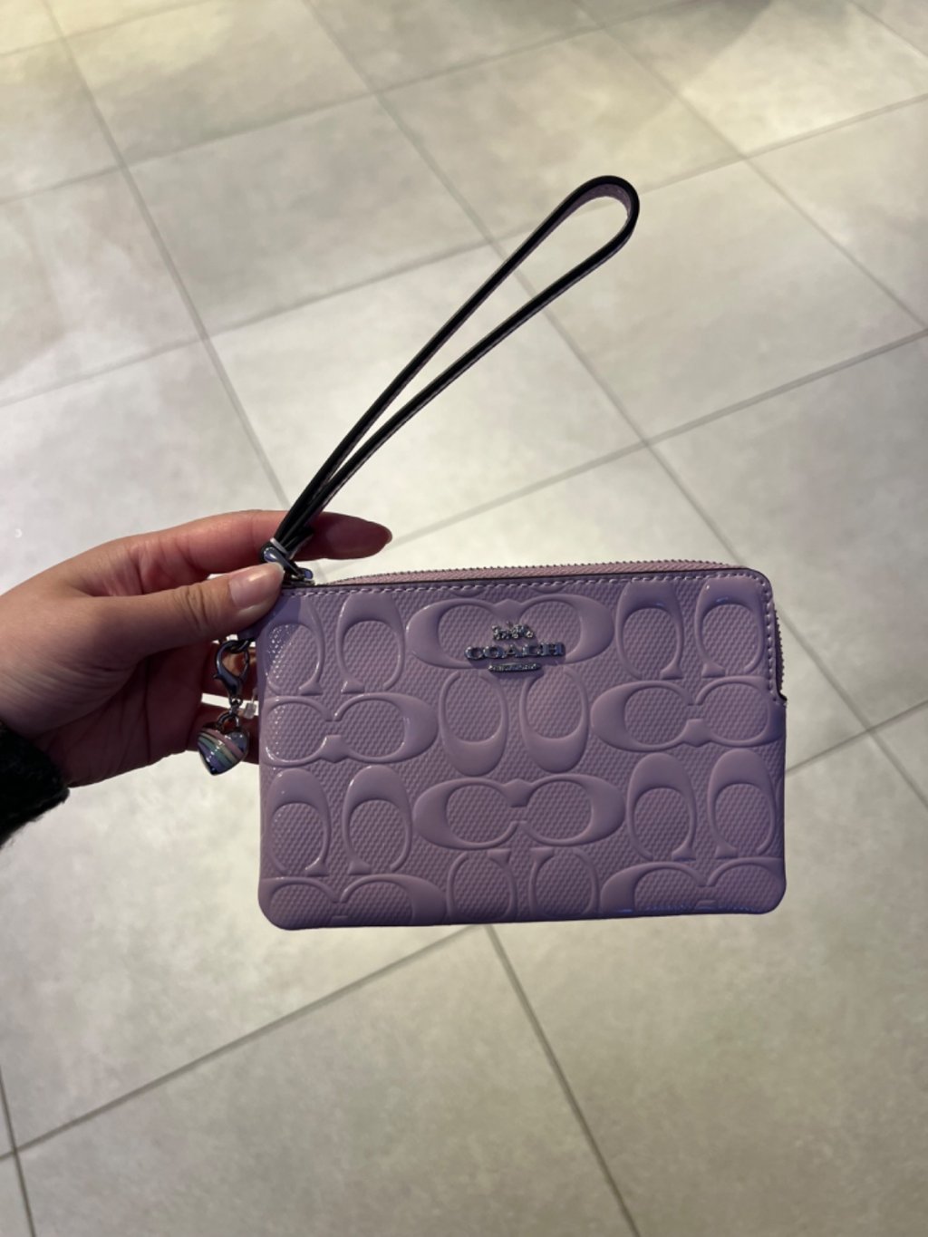 Coach purple logo patent small wristlet