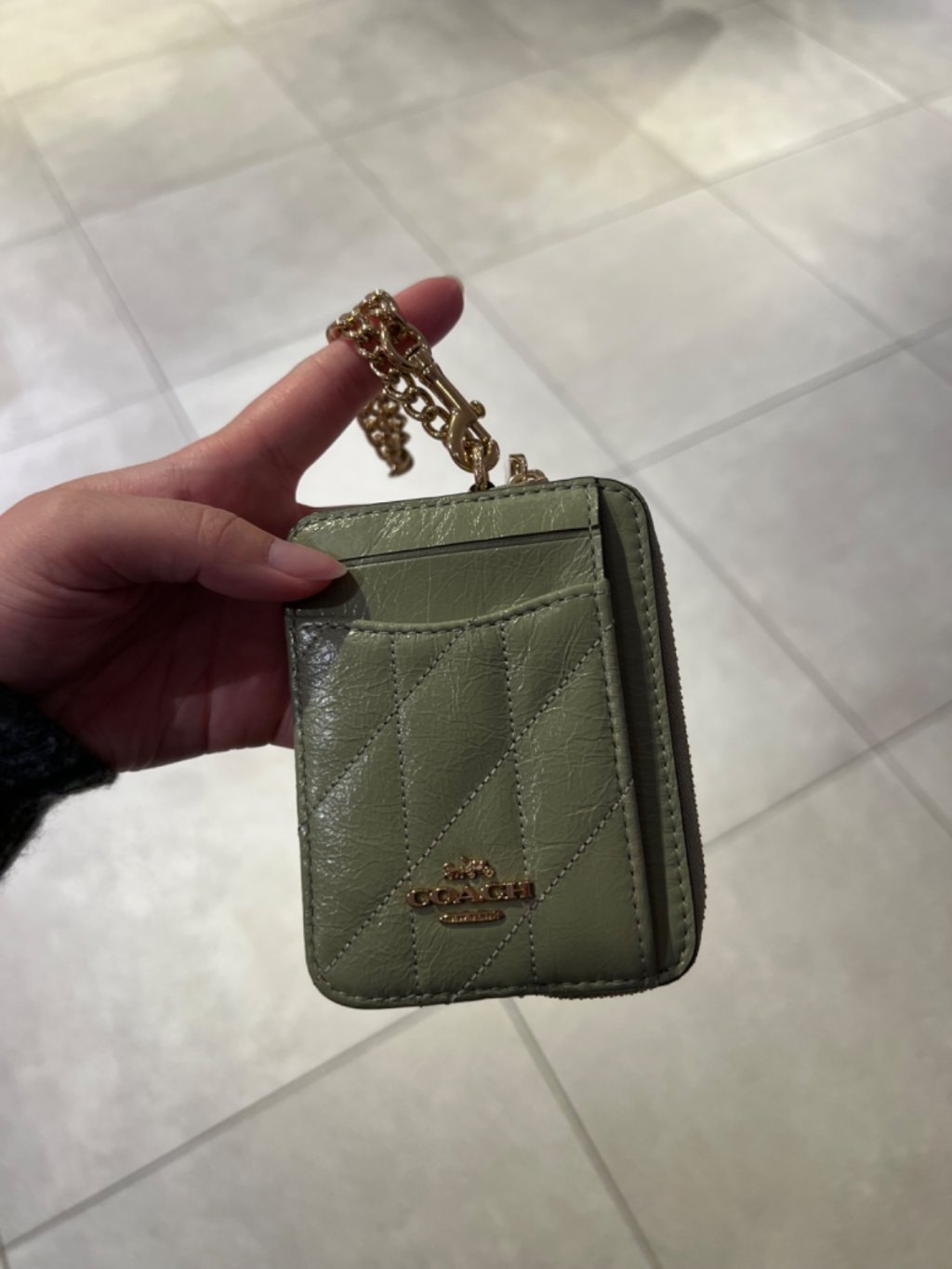 Coach green Quilted zip card case