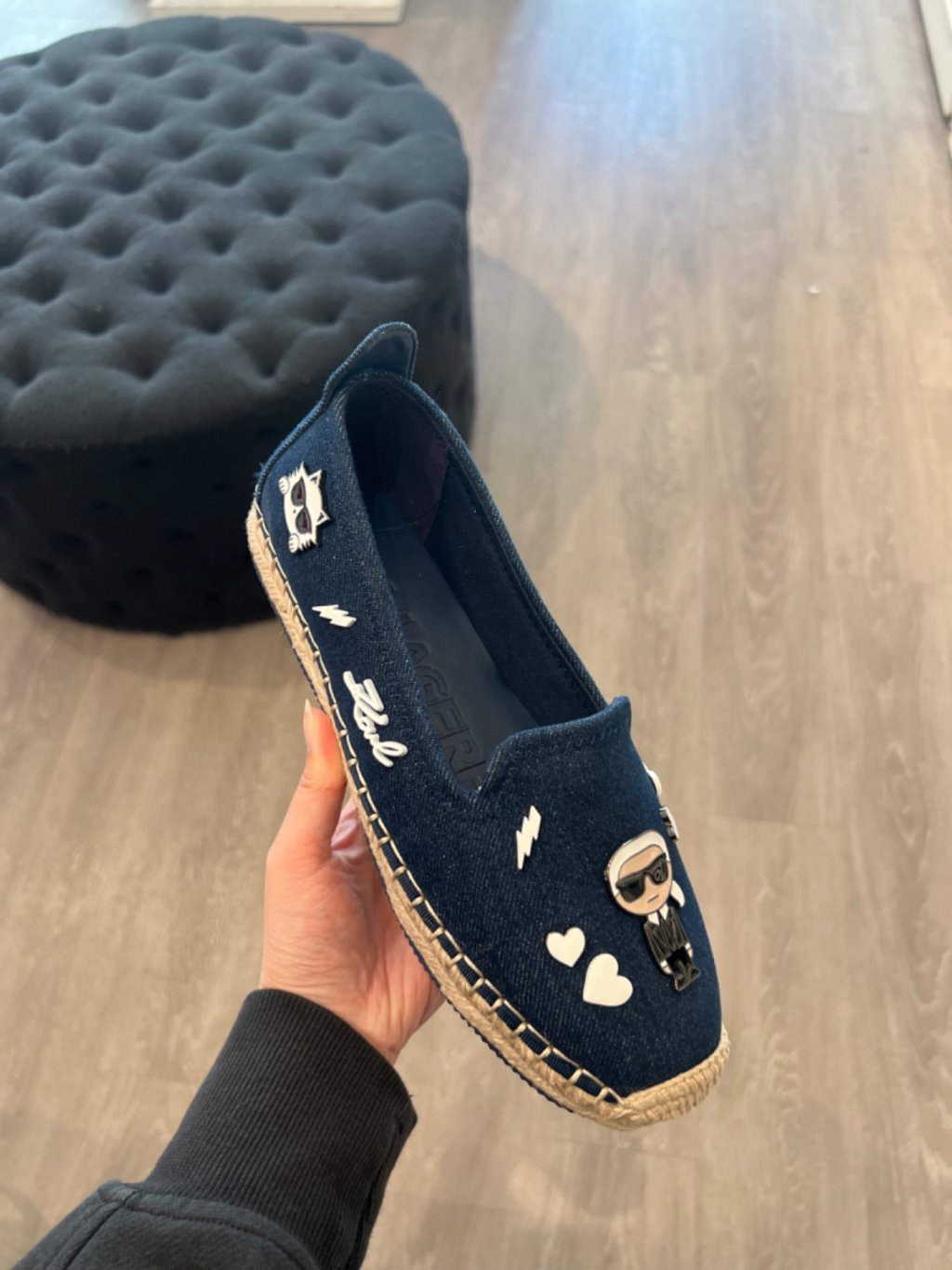 Karl W denim charm espadrille