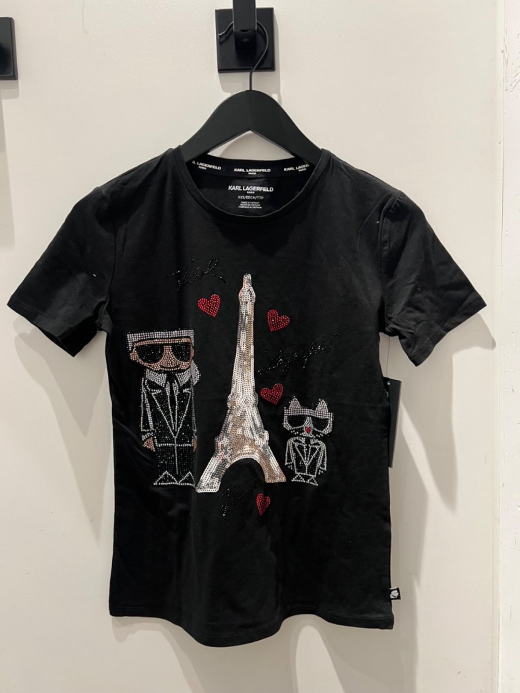 Karl W man + cat tower heart blk tee 閃片