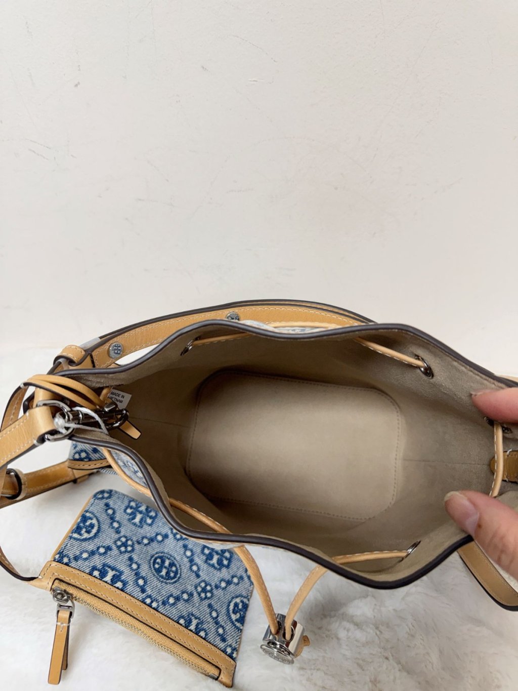 主頁 TB T Monogram Denim Bucket Bag with pockets 181216